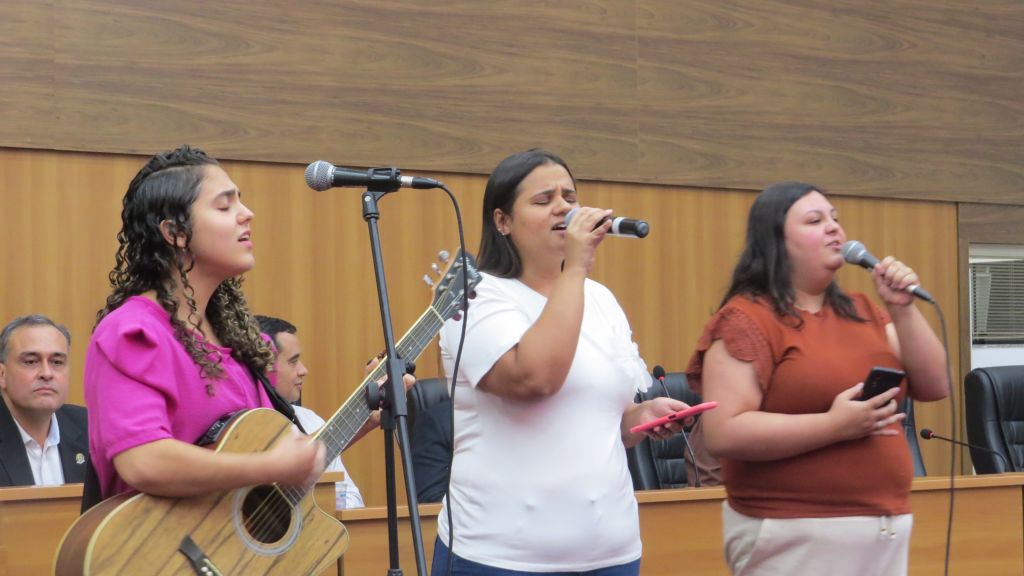 Acrescentando maior brilho à solenidade com louvores de gratidão, as irmãs Camila, Patrícia e Ludmila se apresentaram para os presentes.
