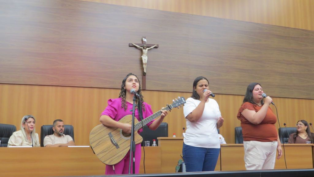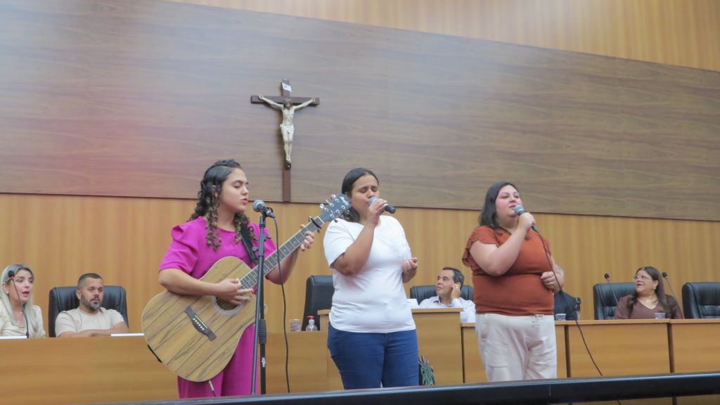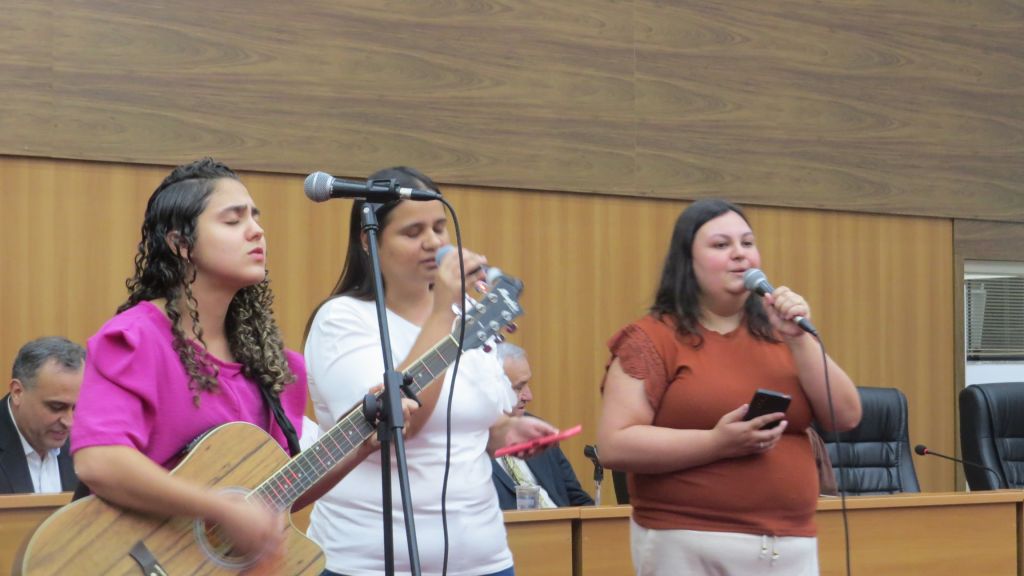 Acrescentando maior brilho à solenidade com louvores de gratidão, as irmãs Camila, Patrícia e Ludmila se apresentaram para os presentes.